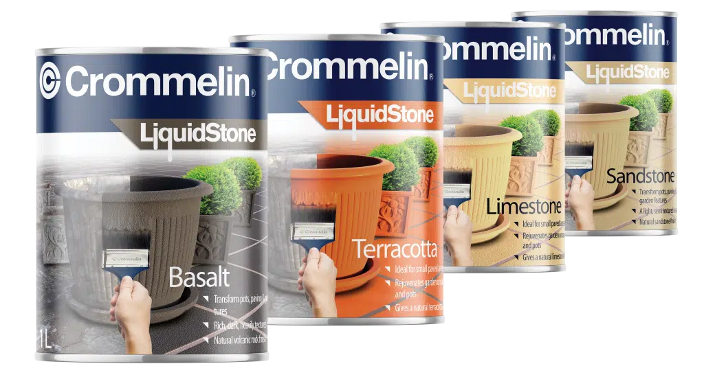 Crommelin LiquidStone is a range of stone effect paints that delivers a realistic natural stone look to most surfaces. Choose from highly textured basalt and sandstone to lightly textured limestone and smooth terracotta, simply paint onto most surfaces to instantly transform the look. Create a natural stone look inside and outside on pots, garden features, walls and paving.