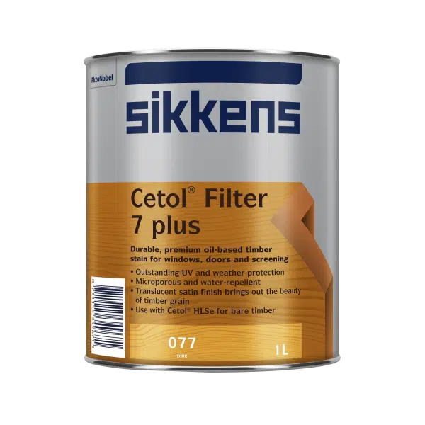 Sikkens Cetol Filter 7 Plus is a premium, highly durable, oil-based, highly transparent timber stain for exterior joinery and cladding.