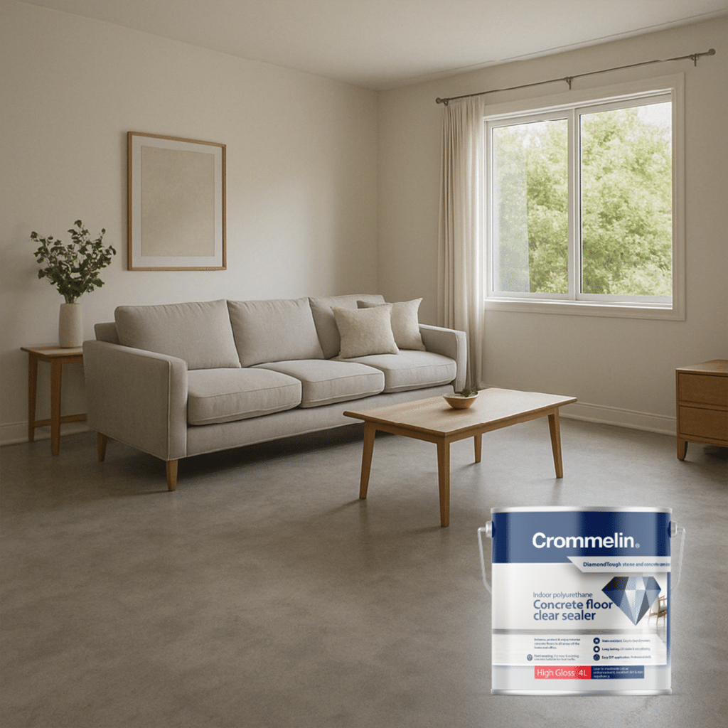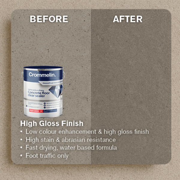 Crommelin DiamondCoat Polyurethane Interior Concrete Floor Clear Sealer is a premium floor finish, formulated for use as a decorative and functional alternative to 2-part polyurethane and epoxy coatings.