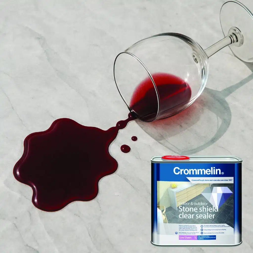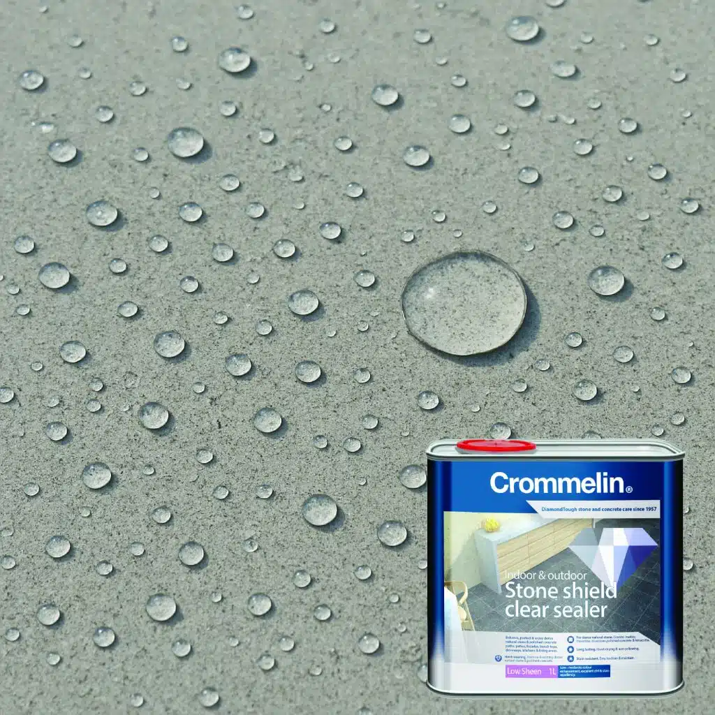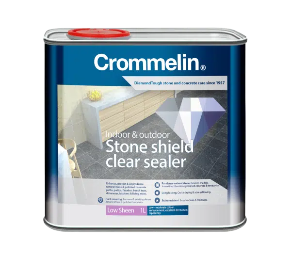 Crommelin DiamondTough Stone Shield Clear Sealer is a clear, premium water based surface sealer, engineered to deliver exceptional stain resistance and water repellence on dense natural stone and dense concrete and masonry surfaces.