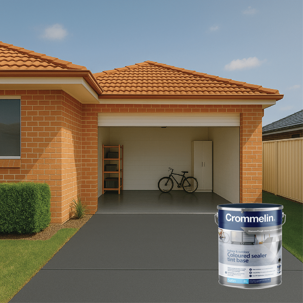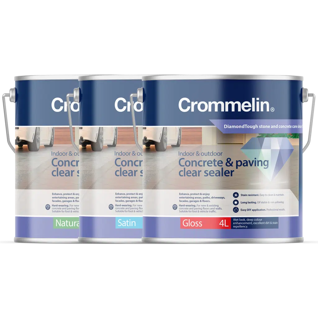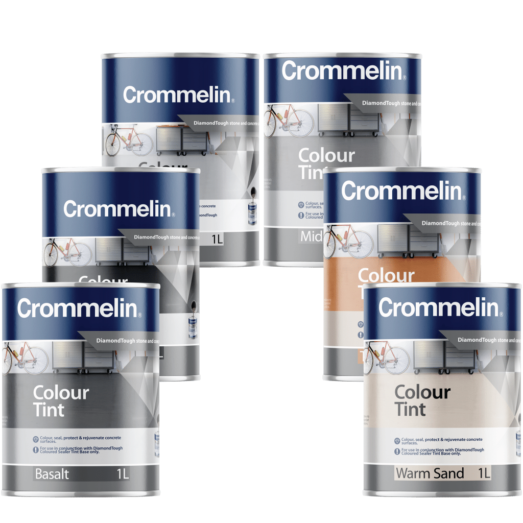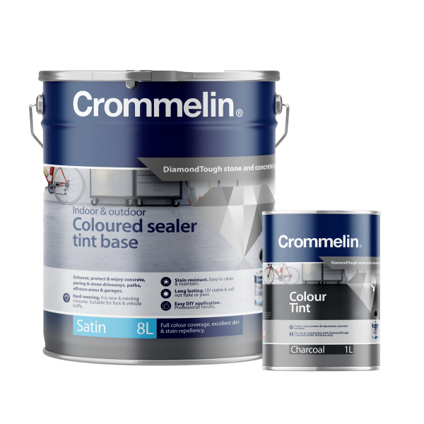 Crommelin DiamondTough Tintable Sealer is designed for use with DiamondTough Tint colours, to re-colour, rejuvenate, seal and protect new and old concrete and paving.