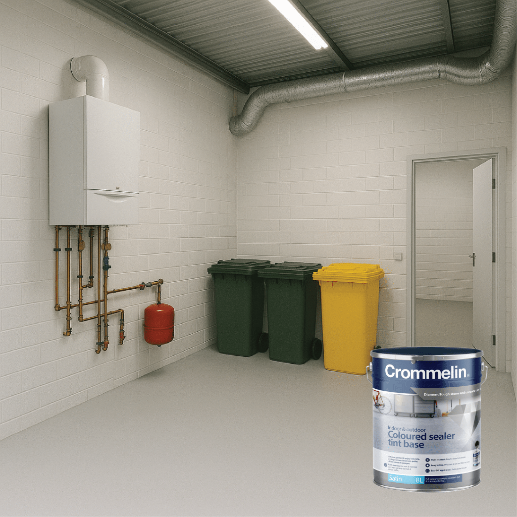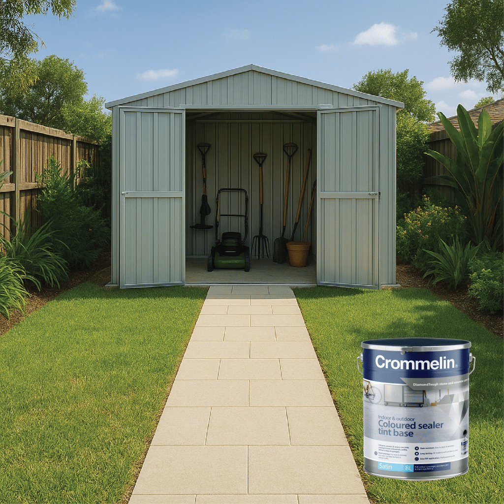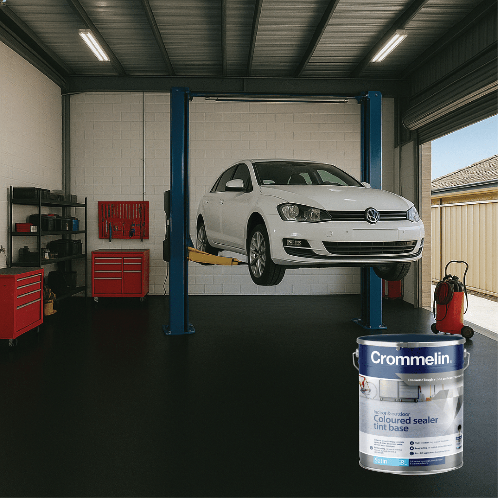 Crommelin DiamondTough Tintable Sealer is designed for use with DiamondTough Tint colours, to re-colour, rejuvenate, seal and protect new and old concrete and paving.