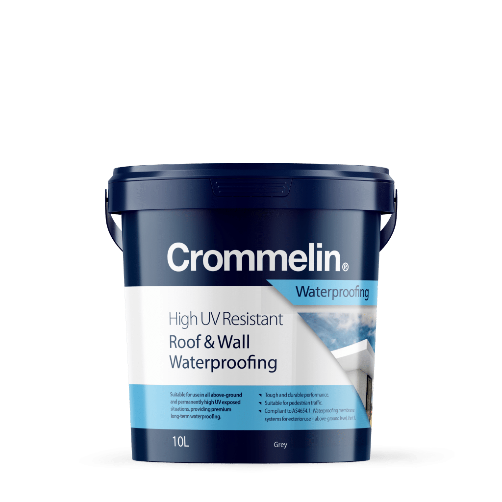 Crommelin High UV Resistant Roof & Wall Waterproofing is tough, durable and suitable for pedestrian traffic.